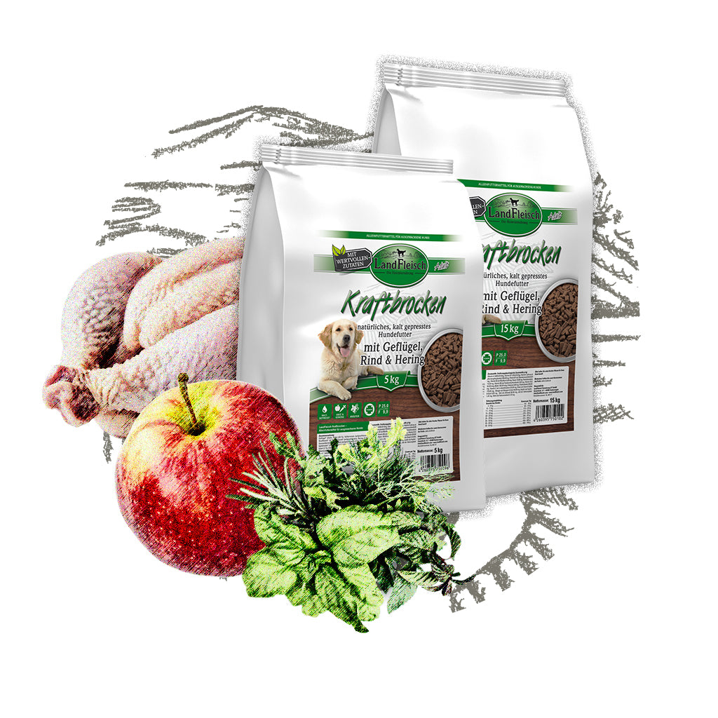 Seit Jahren überzeugt LandFleisch mit einer Auswahl an abwechslungsreicher und hochwertiger Tiernahrung – und das zu einem hervorragenden Preis-Leistungs-Verhältnis. Unsere Rezepturen setzen auf fleischreiche Zutaten und sorgfältig ausgewählte Inhaltsstoffe – perfekt für eine ausgewogene Ernährung. Wir verzichten bewusst auf künstliche Zusätze wie Geschmacksverstärker, Farb- oder Konservierungsstoffe, um Ihrem Hund oder Ihrer Katze eine möglichst naturnahe und schmackhafte Mahlzeit zu bieten.